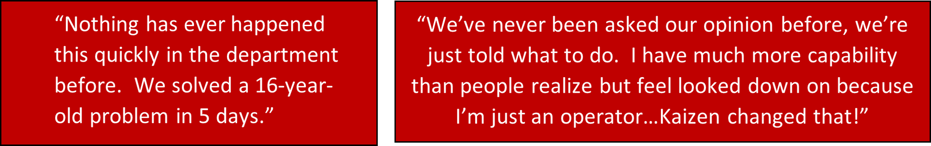 • Work processes throughout the organization are impeded by wastes such as searching, waiting, and defects. Eliminating the wastes can reduce costs, increase profit, increase capacity with the same resources and free up labor for other value adding activities. Applying Kaizen [5] often produces a 20-50% reduction in work process labor content!